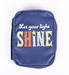 Blue with vibrant color lettering Let your light shine Inspirational reminder Easy-to-carry handle Zippered closure Measures approximately 9" x 6.50" x 1.50"