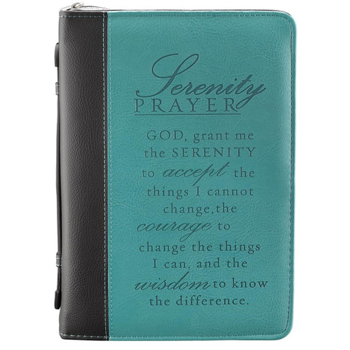 Christian Art GiftsCurrently out of stock, more available soonThis Two-toned Bible cover features the Serenity Prayer in debossed text. The turquoise and black Bible / book cover is constructed of quality man-...