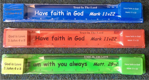 DayOne PublicationsCurrently out of stock, more available soonSet of 4 stationery items with Bible Texts and shrink wrapped30cm RulerSharpenerEraserPencil