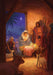 The front of the card features a traditional stable scene with Mary and Joseph and shepherds gathered around the manger.