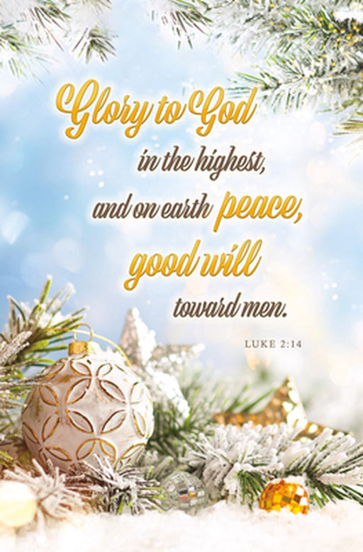 Warner PressCurrently out of stock, more available soonGlory to God In the Highest (Luke 2:14, KJV) regular size bulletins features snow covered pine branches and seasonal decoration with the Scripture ...