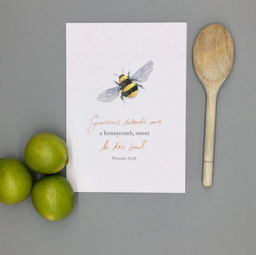 Forget-me-not Christian CardsCurrently out of stock, more available soonThis beautiful hand painted design has been mixed with digital text to create a modern Christian print. It reads 'Gracious words are like a honeyco...