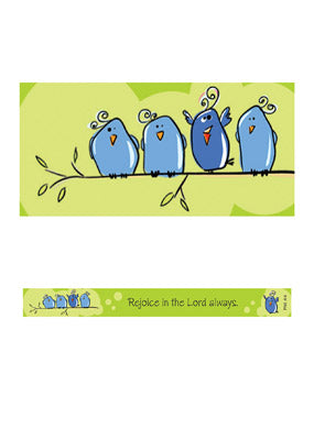 Christian Art GiftsCurrently out of stock, more available soonCute little Blue Birds bring home the message to rejoice is God ... always! Each magnetic strip is printed in full color and laminated, with a full...