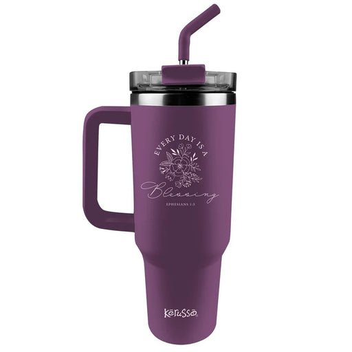 KerussoWe have 2 in stockCount your blessings with this pretty + practical Blessing Stainless-Steel Mug w/Straw by Kerusso in Purple. A handy two-in-one lid allows you to s...