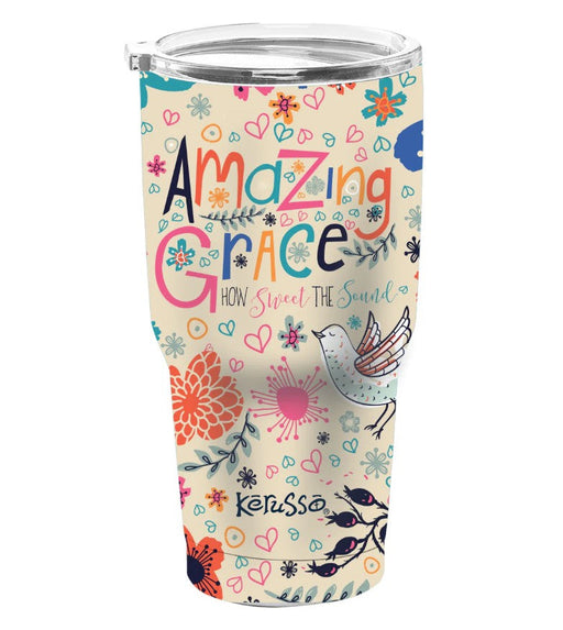 KerussoWe have 1 in stockCelebrate God’s grace with every sip from this artsy “Amazing Grace” Stainless-Steel Tumbler by Kerusso® in Cream. A hand-drawn, multicolored desig...