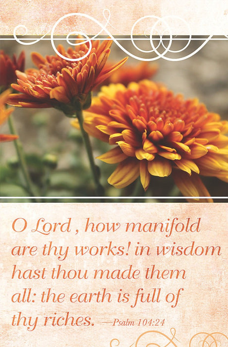 This Broadman bulletin is designed for general worship services and features the scripture Psalm 104:24 from the KJV. A beautiful 4-color image with inset adorns this cover.